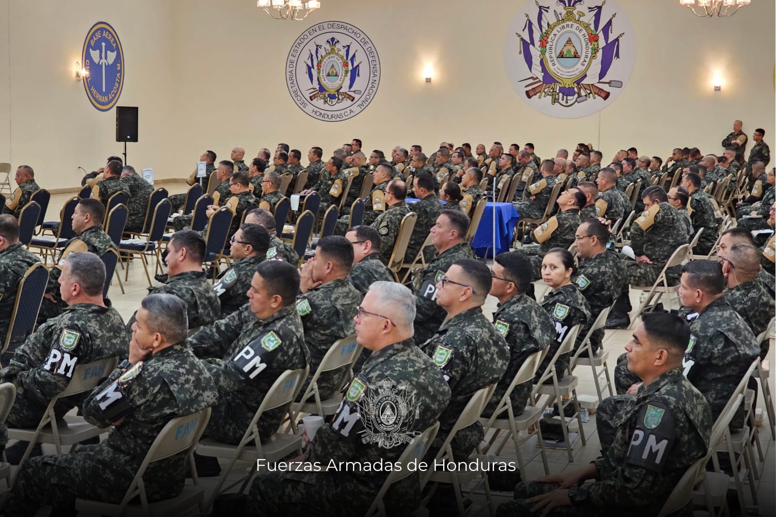 La actividad se desarrolló en las instalaciones del Salón Douglas de la Fuerza Aérea Hondureña y contó con la presencia del Subsecretario de Estado en el Despacho de Defensa Nacional, Licenciado Orlando Garner, Jefe del Estado Mayor Conjunto de las Fuerzas Armadas General de División Roosevelt Leonel Hernández Aguilar, Junta de Comandantes y oficiales superiores.