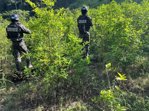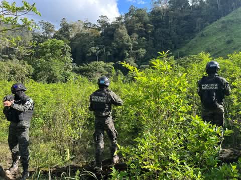 Una plantación de seis manzanas con 21,000 arbustos de hoja de coca ha sido localizada y asegurada por la institución militar a través de la Policía Militar de Honduras, en coordinación con la Dirección de Información Estratégica, en el Parque Nacional Botaderos, Sabá, Colón.