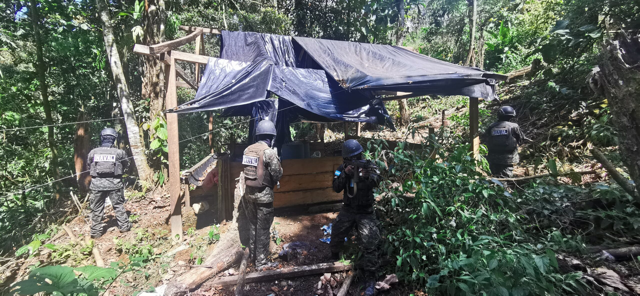 Una plantación de seis manzanas con aproximadamente 46,800 arbustos de hoja de coca fue localizada y asegurada por parte de miembros de la Fuerza Naval de Honduras (FNH) en coordinación con la Dirección de Información Estratégica y la Dirección de Lucha Contra el Narcotráfico en el sector de Quebrada Sonora, Parque Nacional Reserva Botaderos, Sabá, Colón.