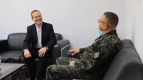 Durante su llegada al país fue recibido por el Señor Rector de la UDH, Coronel de Ingeniería DEM Josué Salvador Jerez Mendoza, quien le dio la más cordial bienvenida destacando la importancia de este tipo de intercambios académicos que fortalecen la formación de líderes estratégicos del futuro.