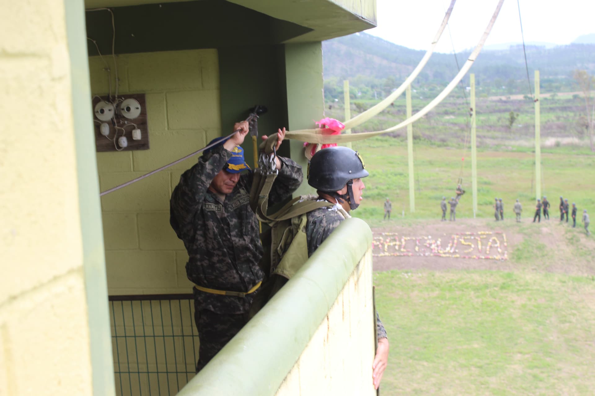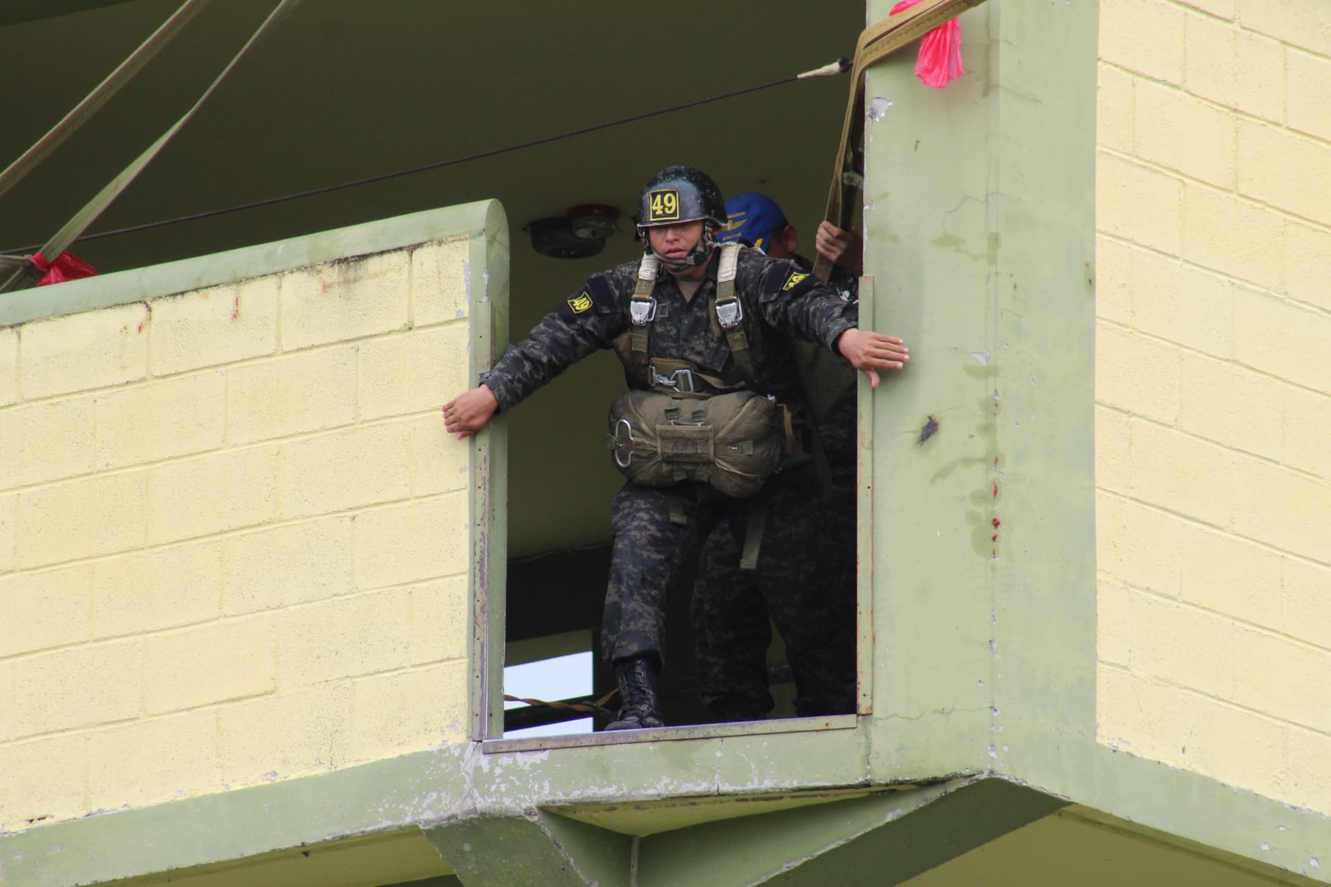 Como parte del riguroso adiestramiento del Curso Básico de Paracaidismo Militar N. 210-2025, las Fuerzas Armadas, a través del Segundo Batallón de Infantería Aerotransportado Táctico, lleván a cabo el día de hoy una exigente jornada de adiestramiento desde la torre de 34 pies.
