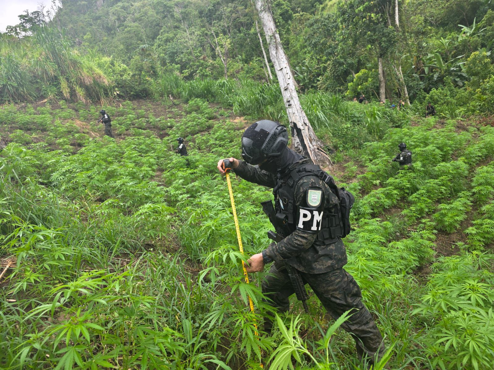 Aproximadamente 4,155 plántulas de supuesta marihuana ubicado en una manzana de terreno, fue localizada y asegurada por las Fuerzas Armadas de Honduras (FFAA) en el sector de Las Minas, Tocoa, Colón.