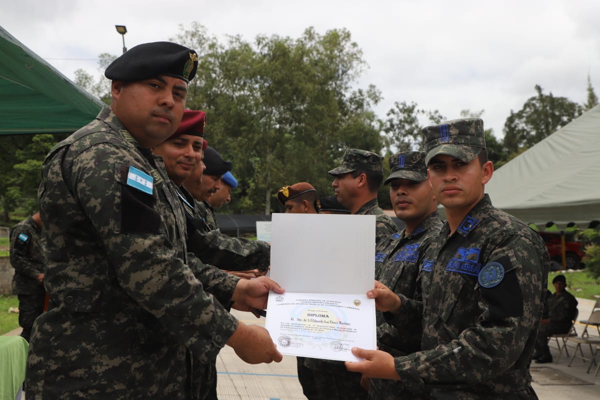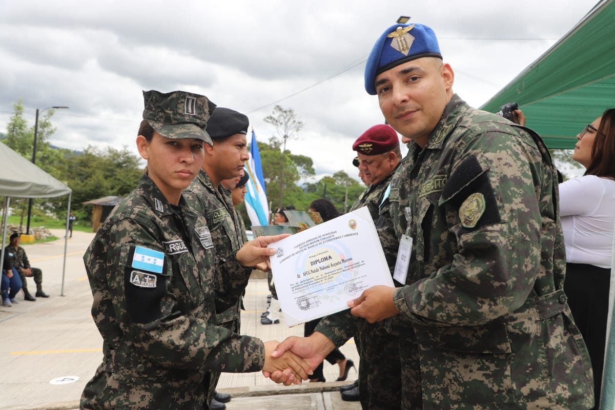 En una solemne ceremonia, las Fuerzas Armadas, a través del Comando de Apoyo al Manejo de Ecosistemas y Ambiente, llevaron a cabo la clausura del “Seminario Taller Internacional de Agricultura Orgánica, Elaboración de Viveros y Manejo Silvicultural de Plantaciones Forestales N. 06-2025”, el cual tuvo como principal objetivo promover prácticas agrícolas y forestales sostenibles, que contribuyan al manejo responsable de los recursos naturales y fortalezcan la seguridad ambiental del país.