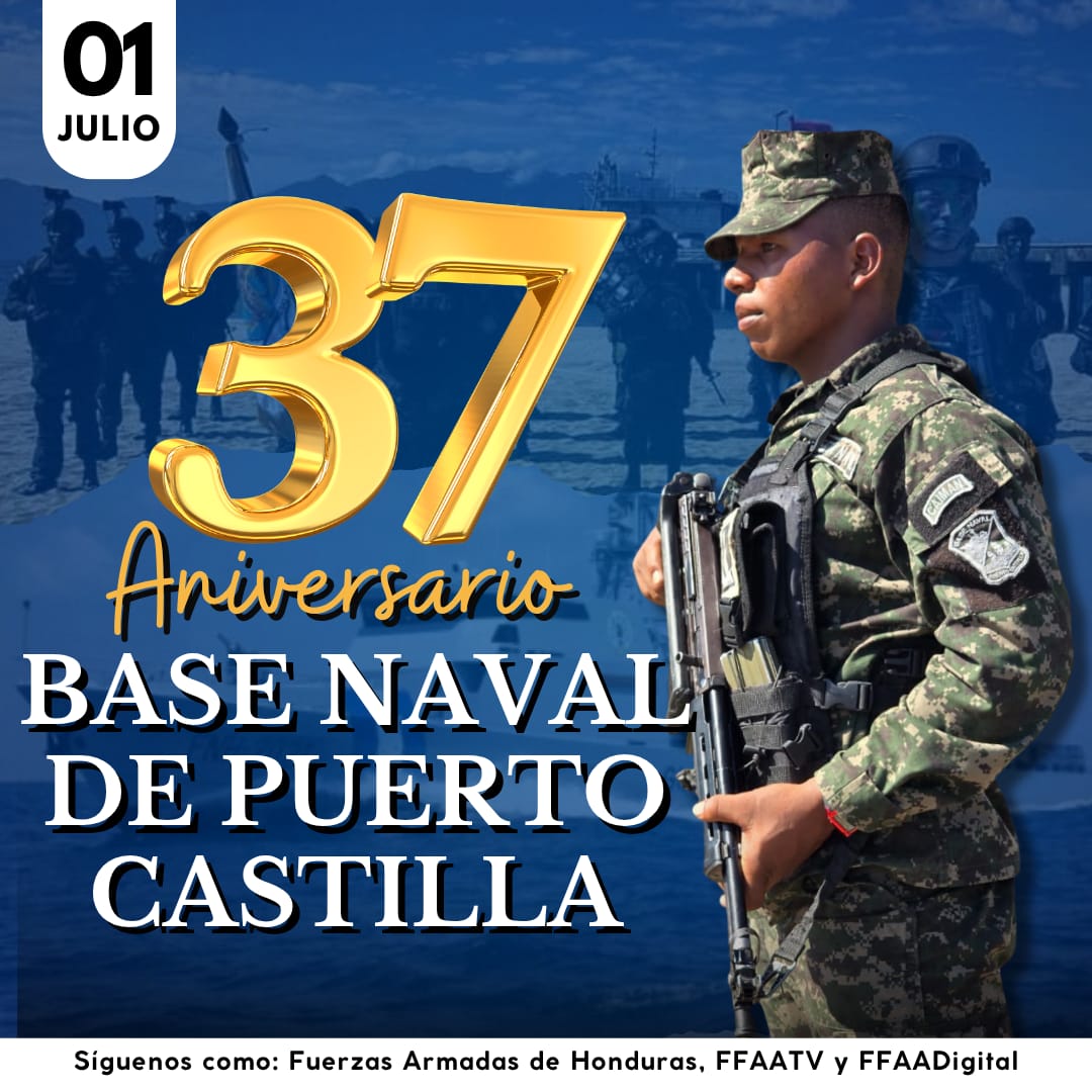 Las Fuerzas Armadas de Honduras, conmemoran el 37 aniversario de la Base Naval de Puerto Castilla, símbolo de compromiso, honor y lealtad en la defensa de la soberanía nacional.