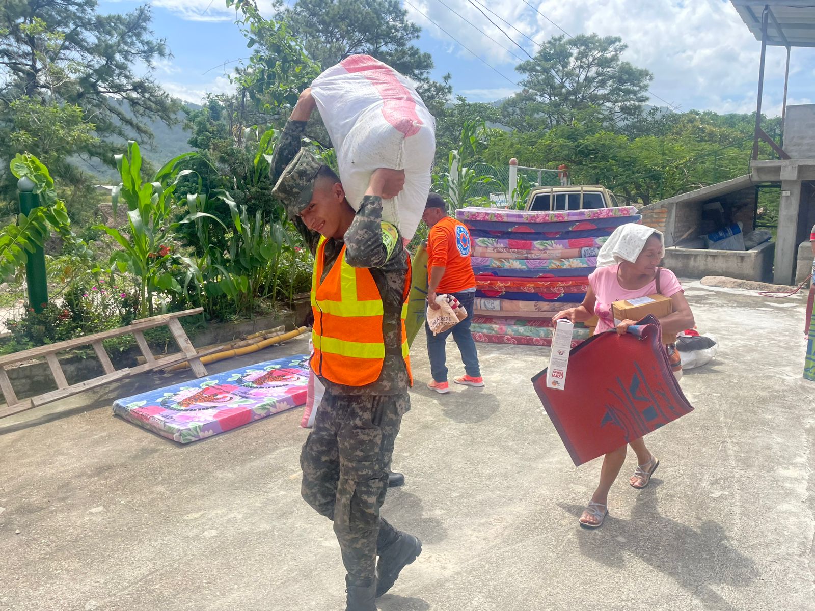 Estas labores incluyen la Evaluación de Daños y Análisis de Necesidades (EDAN), así como la entrega de víveres y ayuda directa a la población, priorizando a las familias más afectadas por derrumbes e inundaciones provocadas por el paso de la Tormenta Tropical Erick, particularmente en la comunidad de El Varancal.