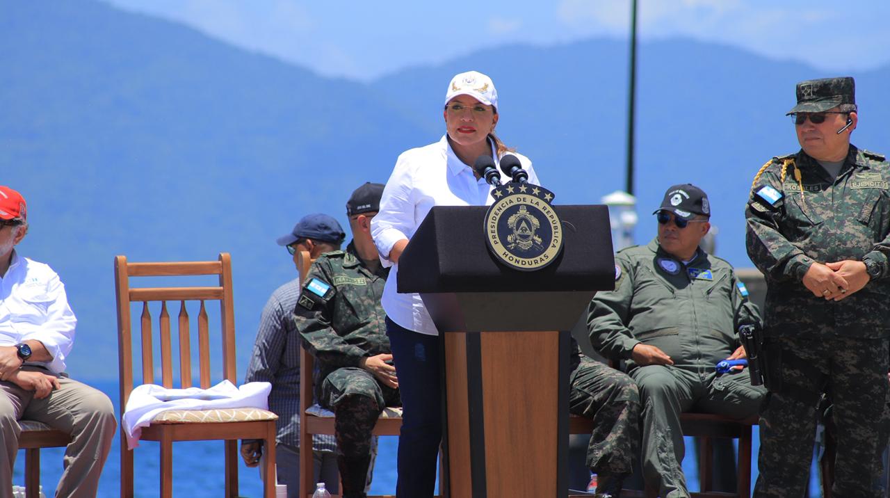 La mandataria, fue acompañada por el Secretario de Defensa por ley de la Secretaría de Estado de Defensa Nacional (SEDENA), Licenciado Orlando Garner Ordóñez; el Jefe del Estado Mayor Conjunto, General de División, Roosevelt Leonel Hernández Aguilar; el Comandante General de la Fuerza Naval de Honduras, Contralmirante Austacil Hagarín Tomé; miembros de la Junta de Comandantes, así como Oficiales nacionales y extranjeros.