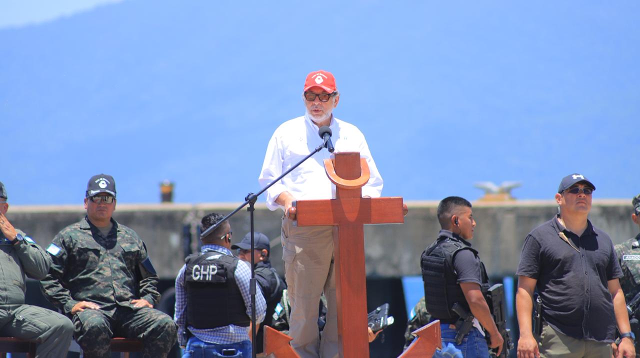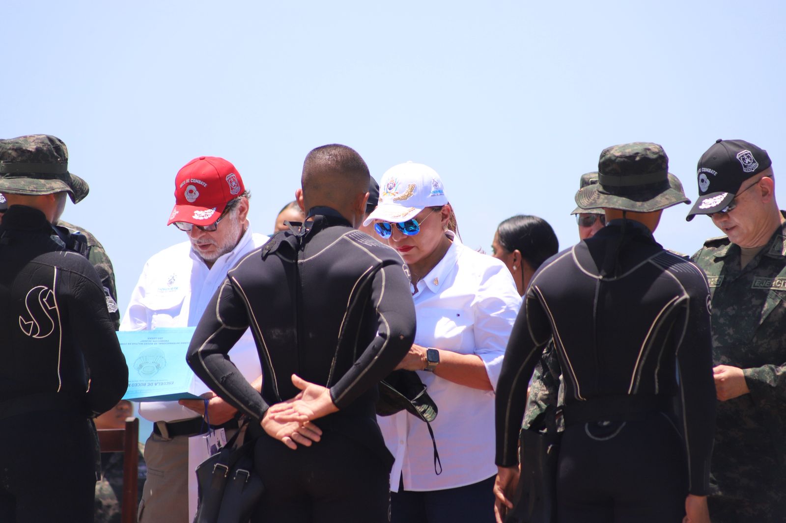 La señora Presidenta Constitucional de la República y Comandante General de las Fuerzas Armadas, Iris Xiomara Castro Sarmiento, realiza una visita oficial en las instalaciones de la Estación Naval de Trujillo, donde presidió la ceremonia de clausura del V Curso Internacional de Buceo Militar de Combate, Promoción 34-2025, y conmemoró el 37 aniversario de la Base Naval de Puerto Castilla, fundada en 1988.