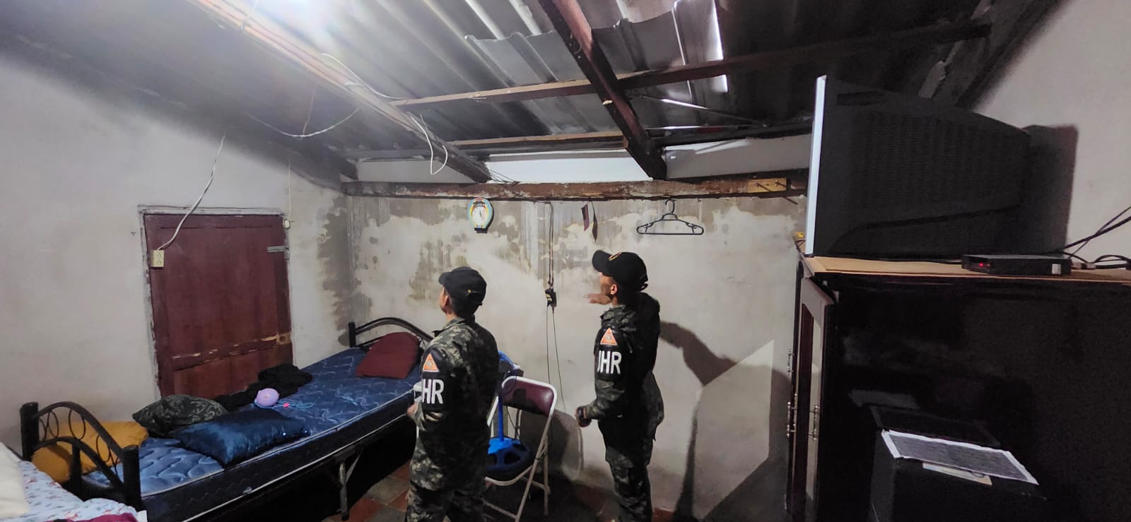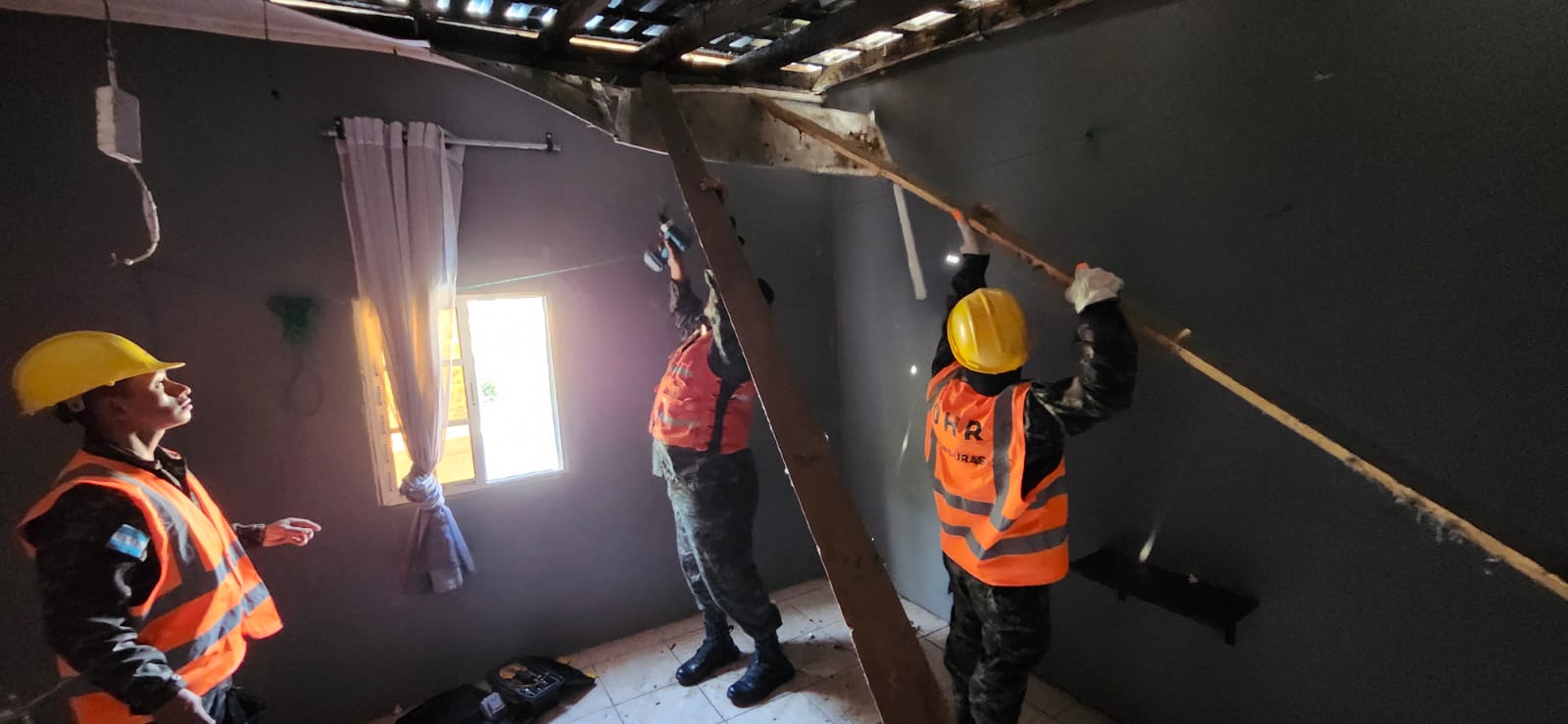 Las Fuerzas Armadas de Honduras a través de la Unidad Humanitaria y de Rescate #UHR, brindan apoyo humanitario a una vivienda en la Colonia 3 de Mayo en Francisco Morazan, ya que debido a las fuertes lluvias se ha desprendido el techo de la casa de un ciudadano .