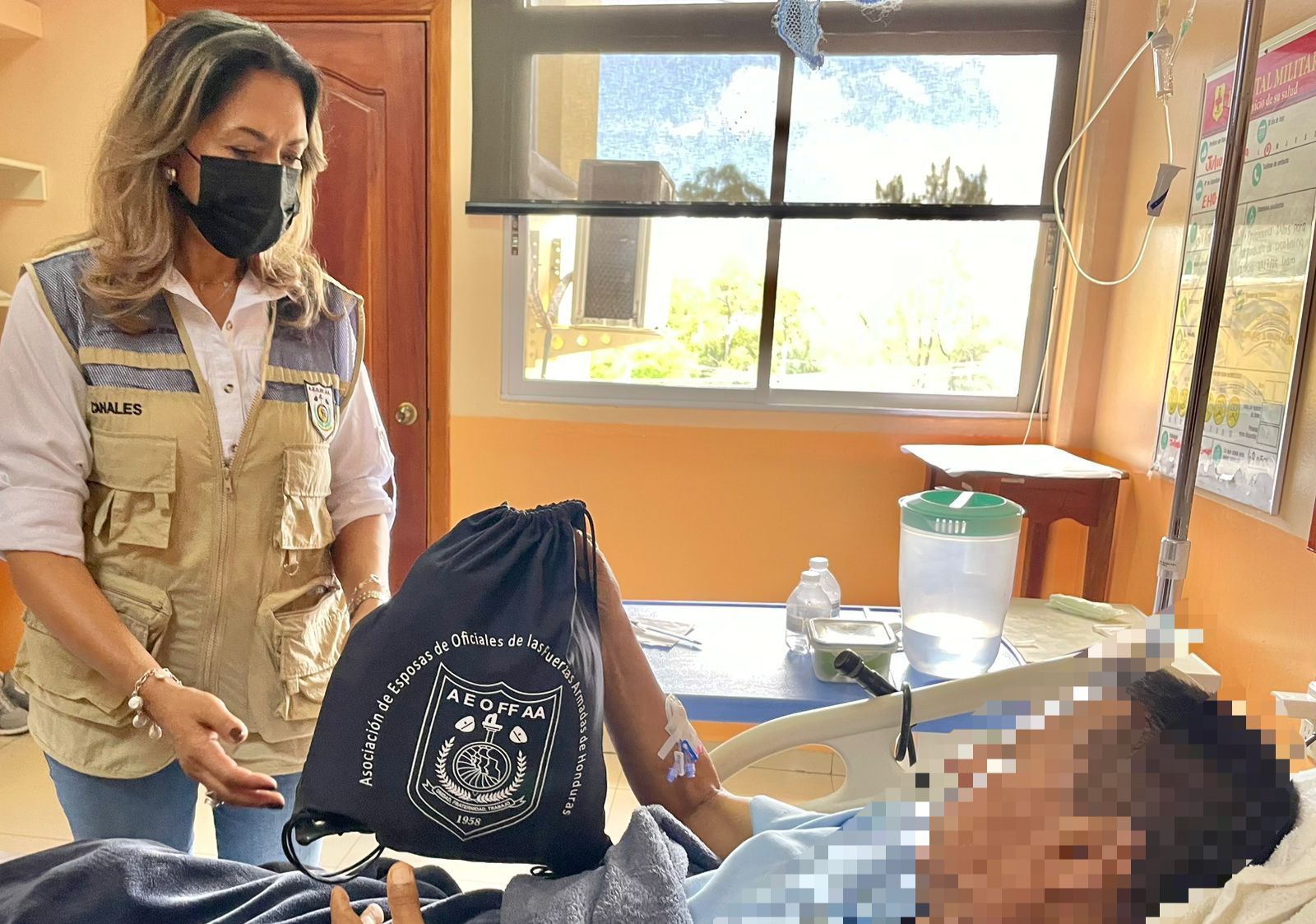 Este día, la señora Ondina Andino de Hernández, presidenta de la Asociación de Esposas de Oficiales de las Fuerzas Armadas (AEOFFAA), acompañada por las demás socias de la junta directiva, realizaron una visita al personal de oficiales, suboficiales, tropa y auxiliares que se encuentran ingresados en el Hospital Militar.