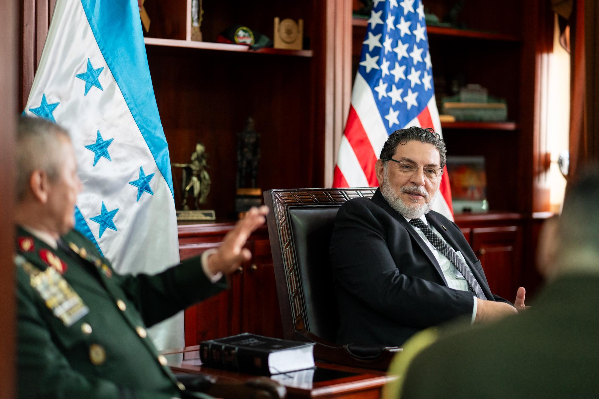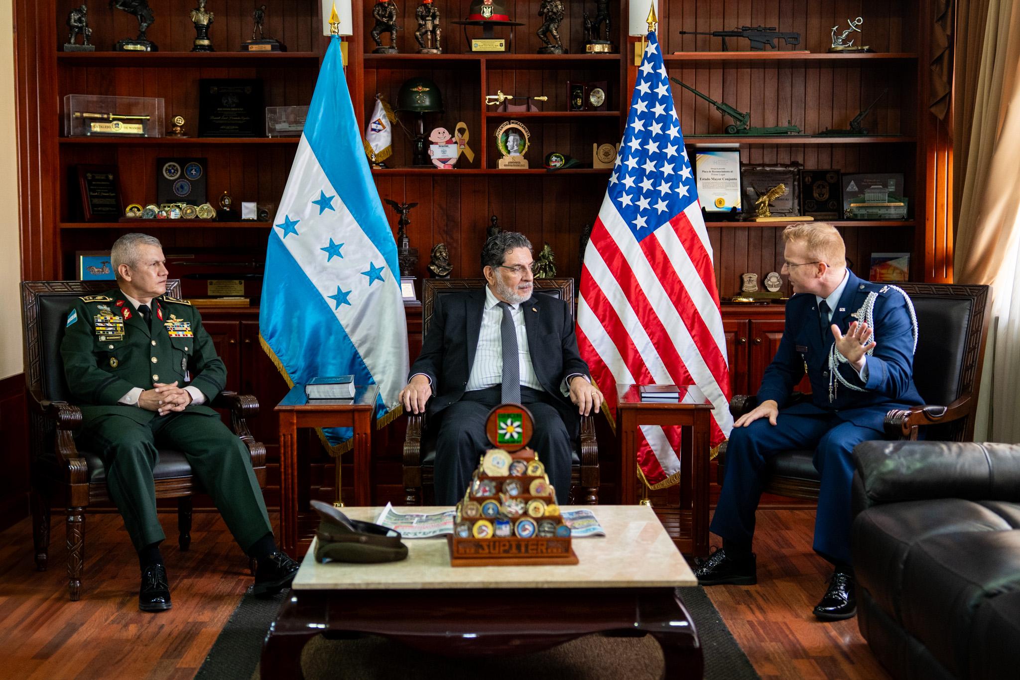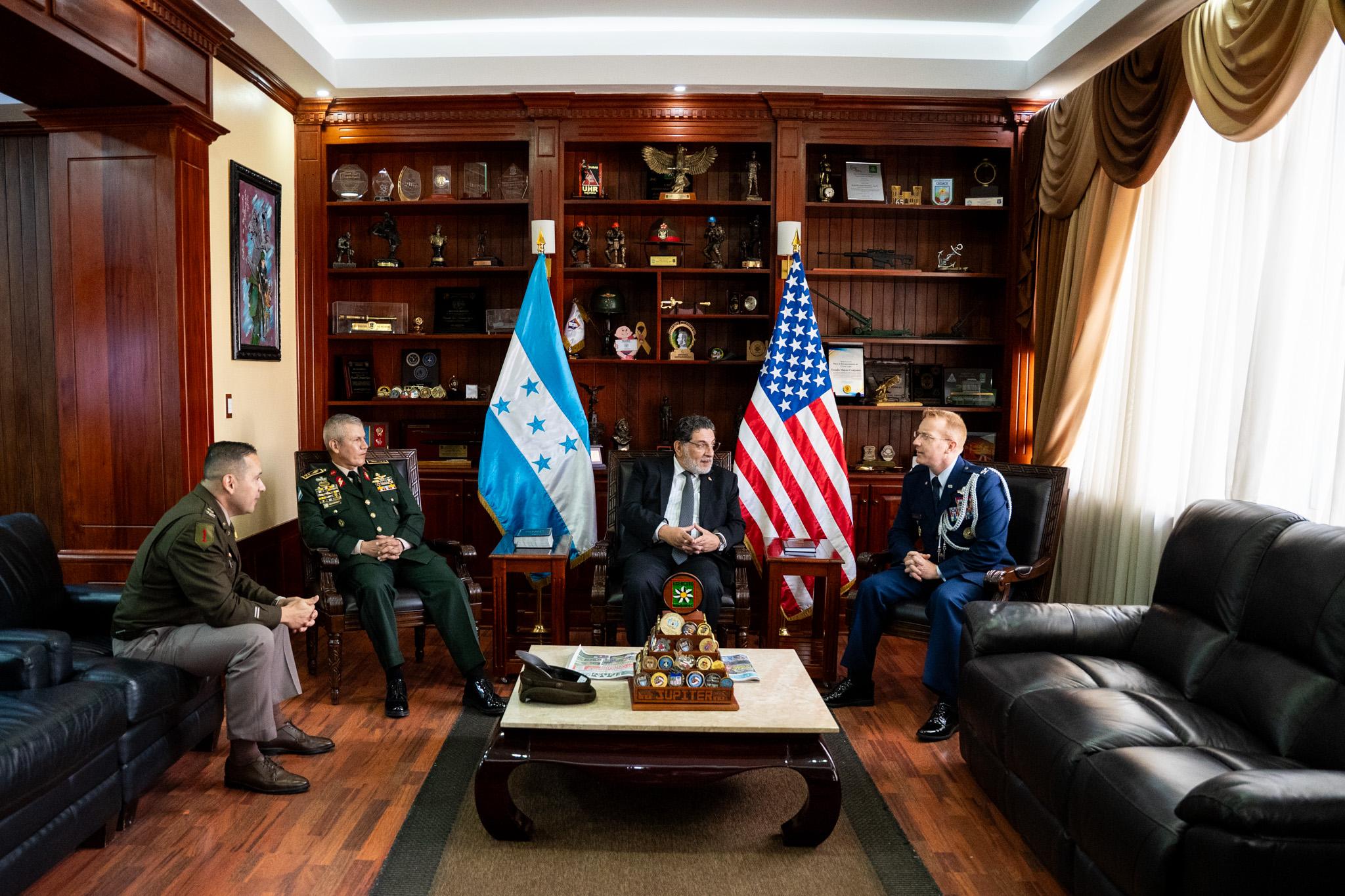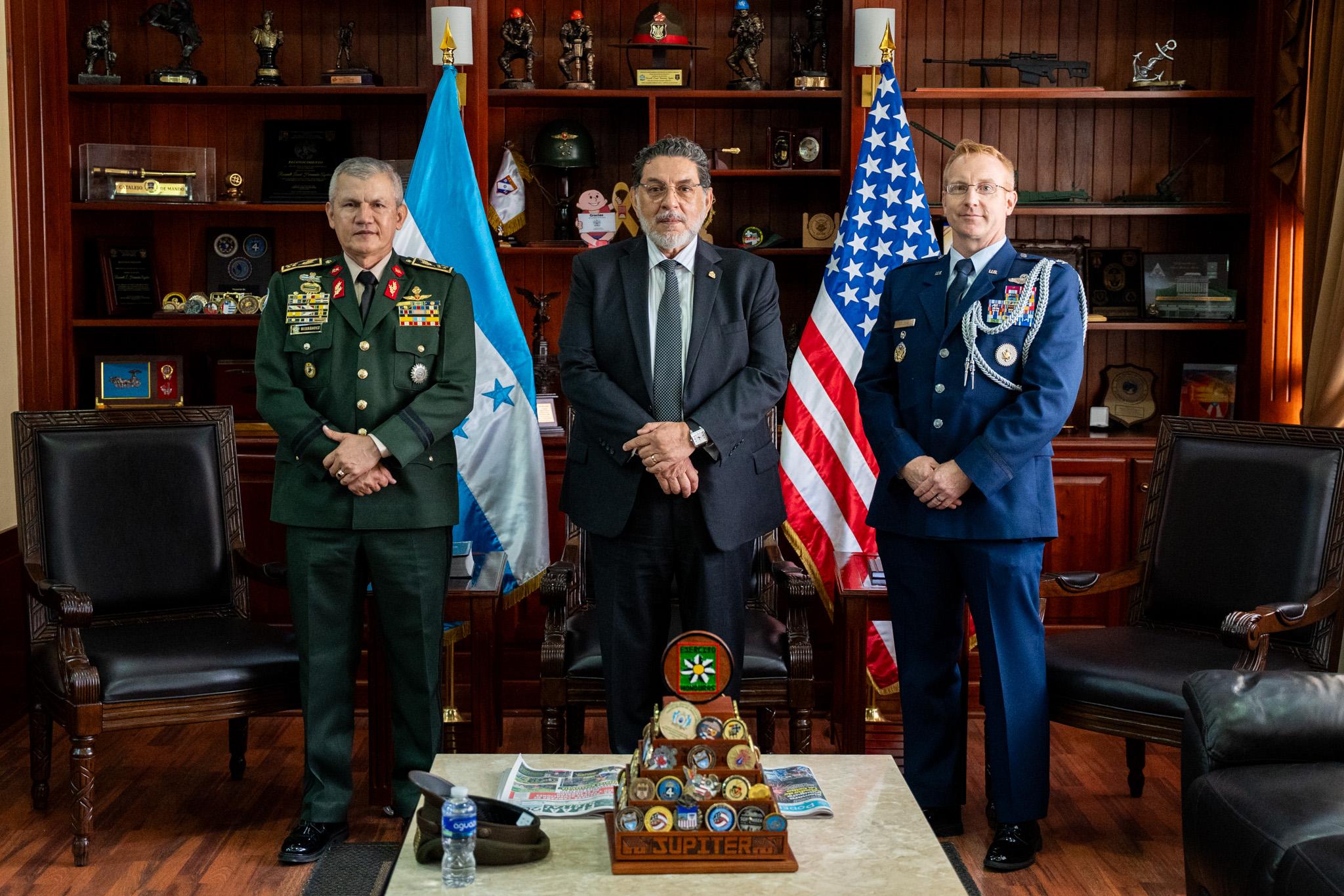 En el marco del fortalecimiento de las relaciones bilaterales entre Honduras y Estados Unidos, el Subsecretario de Defensa Nacional, Licenciado Orlando Garner, junto con el Jefe del Estado Mayor Conjunto, General de División Roosevelt Hernández, sostuvieron un encuentro protocolar con el reciente, Agregado Militar Aéreo de los Estados Unidos, Coronel de Aviación Nicholas E. Delcour.