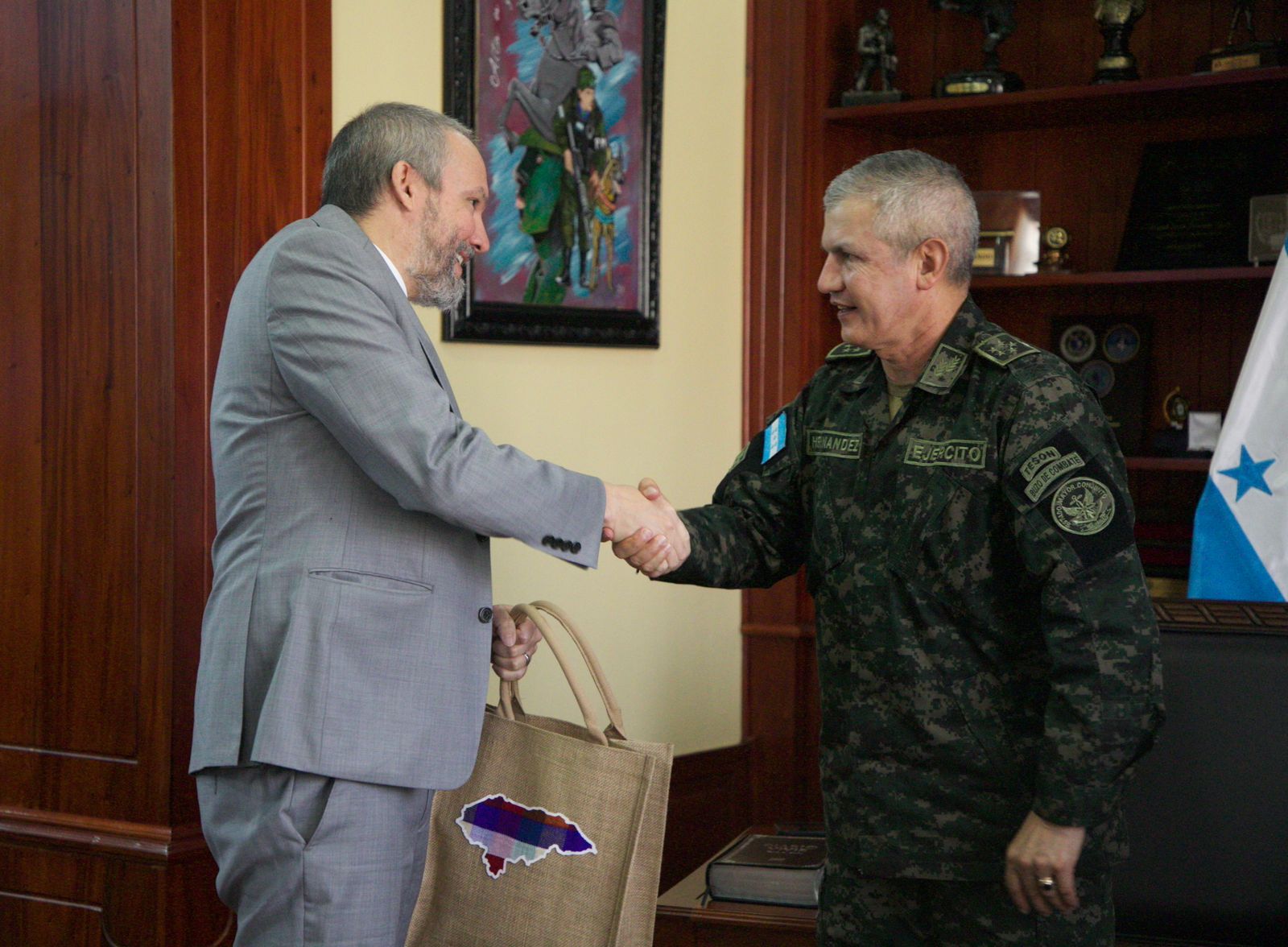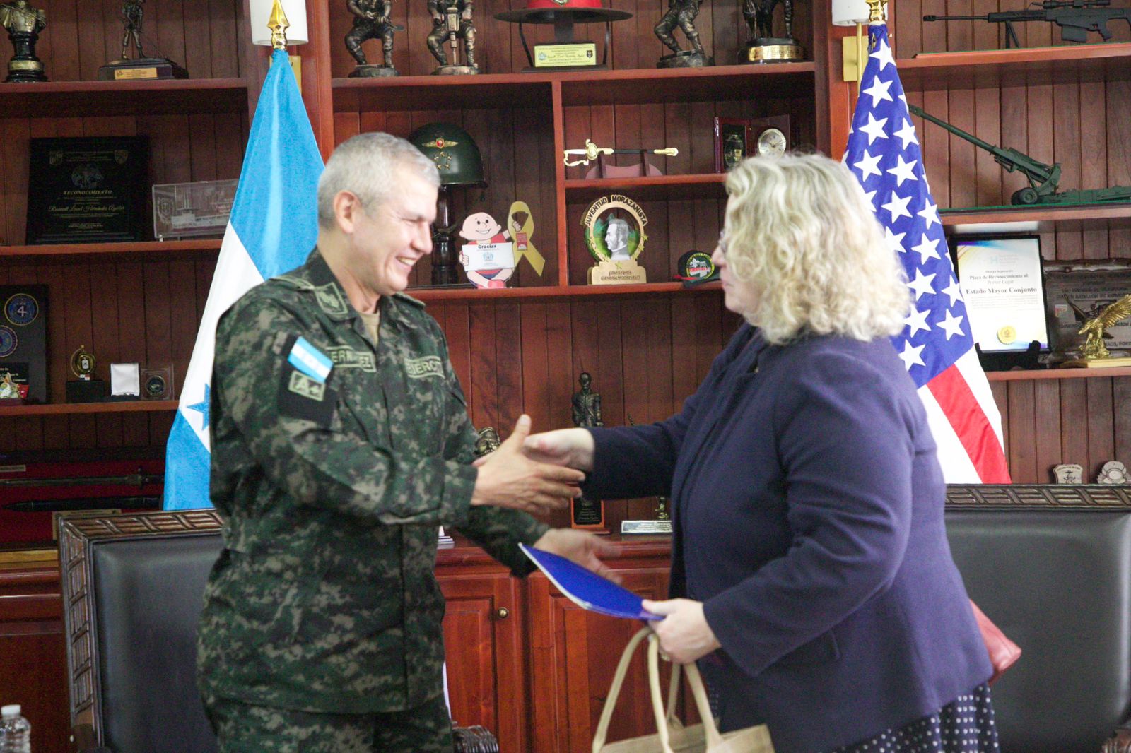 El día de hoy, en la Jefatura del Estado Mayor Conjunto, ubicada en las instalaciones del Cuartel General «Francisco Morazán”, el señor Jefe del Estado Mayor Conjunto, General de División, Roosevelt Hernández, recibió la cordial visita de la señora Encargada de Negocios de la Embajada de Estados Unidos en Tegucigalpa, Anny Colleen A. Hoey.