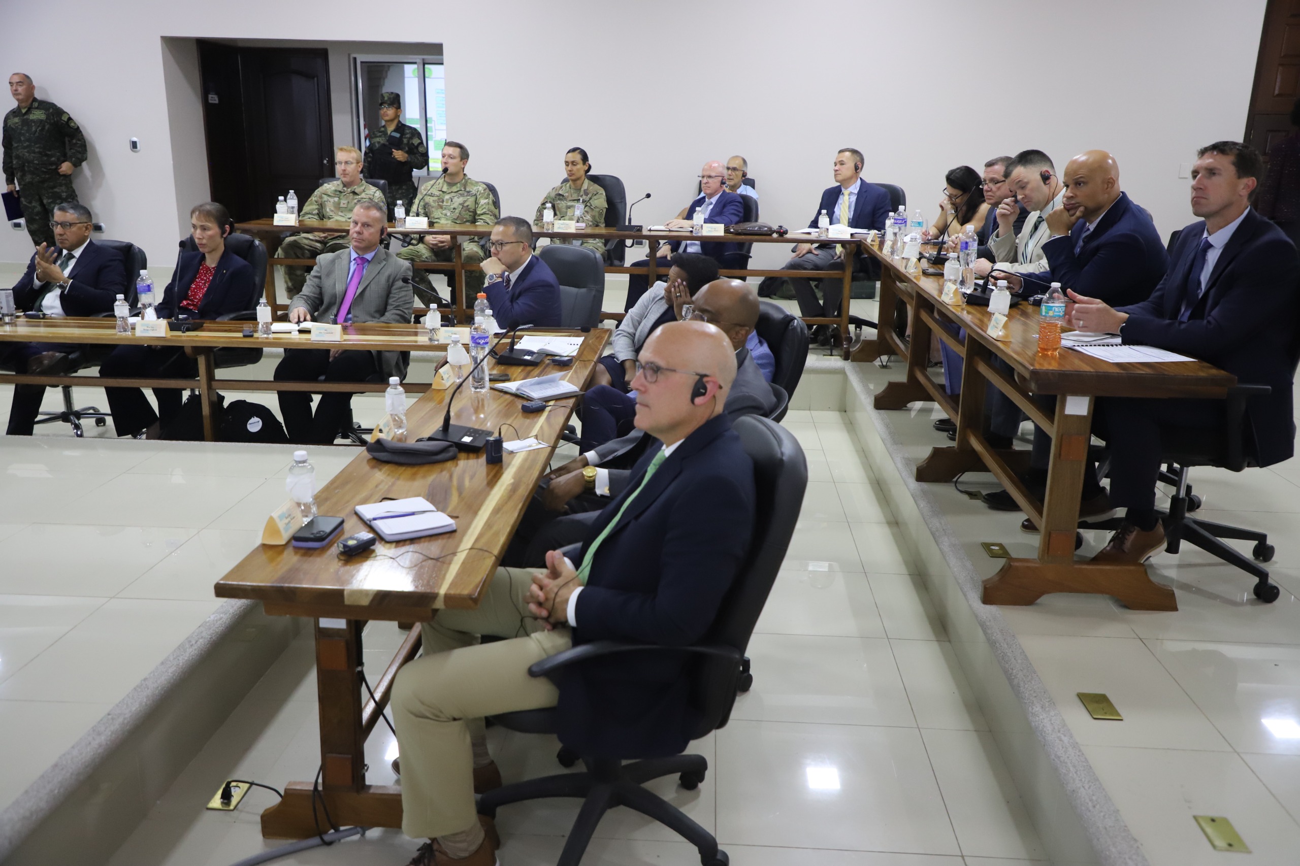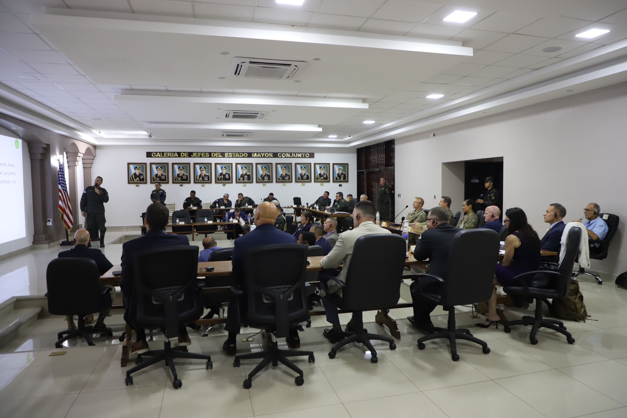 Durante el encuentro se presentó una exposición detallada sobre la estructura, funciones y áreas de operación de las Fuerzas Armadas de Honduras, destacando su papel en la defensa, seguridad, cooperación interinstitucional y apoyo a la población hondureña.