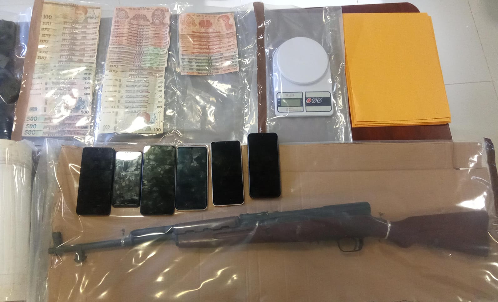 Como resultado de estas operaciones, se logró la detención de dos ciudadanos y el decomiso de un fusil, siete cargadores vacíos, 63 cartuchos sin percutar, seis teléfonos celulares, 7,080 lempiras en efectivo, cuatro chalecos antibalas, una balanza digital, 15 bolsas plásticas con supuesta cocaína, con un peso aproximado de 2 kilogramos, dos pasamontañas y un par de guantes.