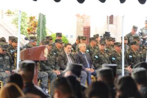 La ceremonia fue presidida por el señor Secretario de Defensa Nacional, General de División en la honrosa condición de retiro Roosevelt Leonel Hernández Aguilar, el señor Jefe del Estado Mayor Conjunto, General de Brigada Héctor Benjamín Valerio Ardón, así como la nueva Junta de Comandantes, señores oficiales, suboficiales, personal de tropa y personal auxiliar.